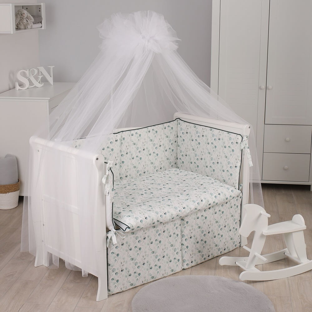 Комплект постельного белья — это классический комплект из 100%-го хлопка. Имеет нежные цвета, симпатичную аппликацию с милыми животными и высокое качество изделия. В комплекте — 6 предметов, которые нужны, чтобы полностью укомплектовать кроватку. Мягкие бортики берегут малыша от сквозняков и создают нужный уют для сна. Бортик включает две независимых части с возможностью отстегивать фронтальную и контактировать визуально с родителями. Комплект подходит для кроватей с размером спальных мест - 120x60 см и 125x65 см. Чехлы бортиков застегиваются на молнию, съемные. Одеяло очень легкое, воздушное, гипоаллергенное.