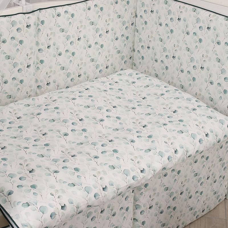 В комплектеПростыня на резинке, Подушка, Одеяло, Наволочка, Пододеяльник, Бортик (бампер)