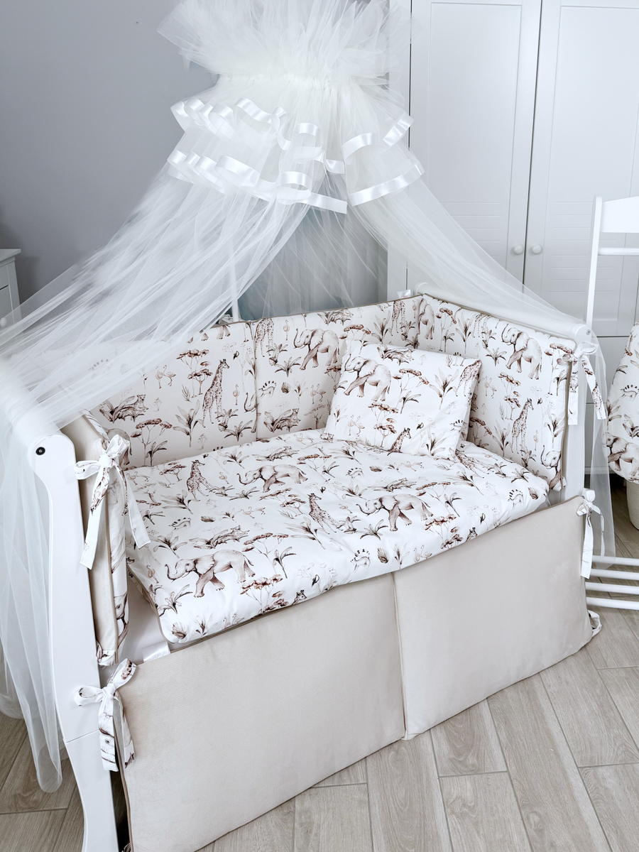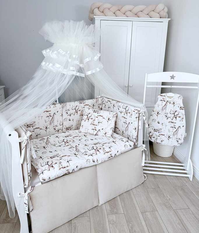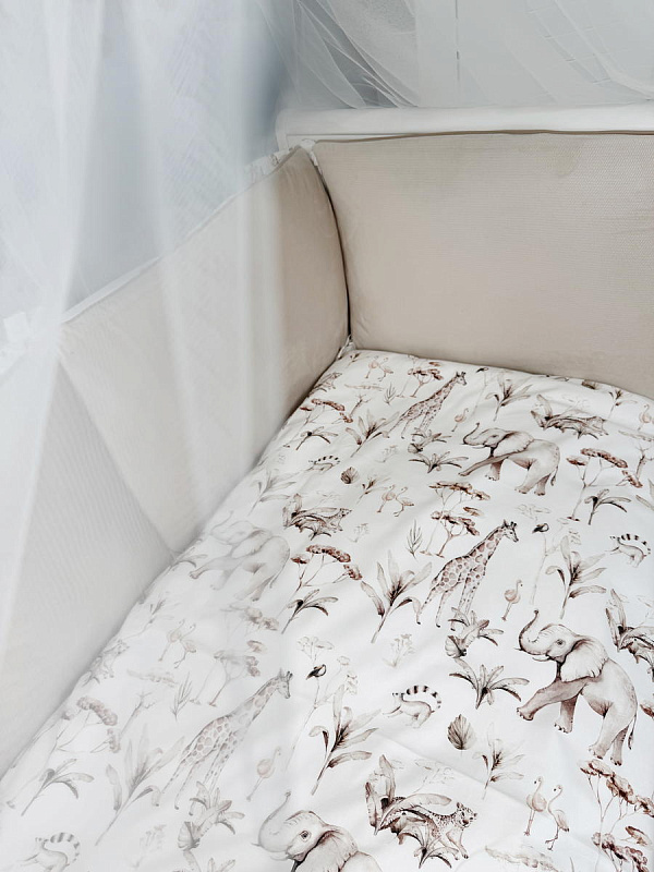 В комплектеПростыня на резинке, Подушка, Одеяло, Наволочка, Пододеяльник, Бортик (бампер)