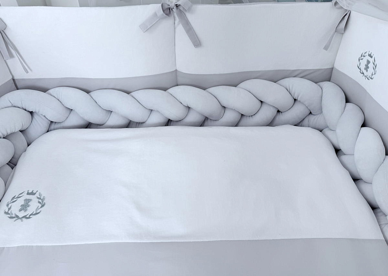 В комплектеПростыня на резинке, Подушка, Одеяло, Наволочка, Пододеяльник, Бортик (бампер)