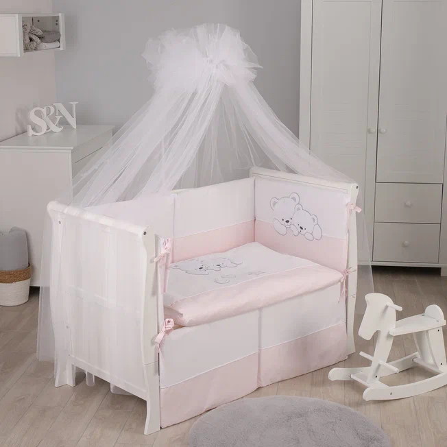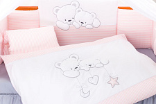 В наборебампер, подушка, одеяло, наволочка, пододеяльник, простынь на резинке