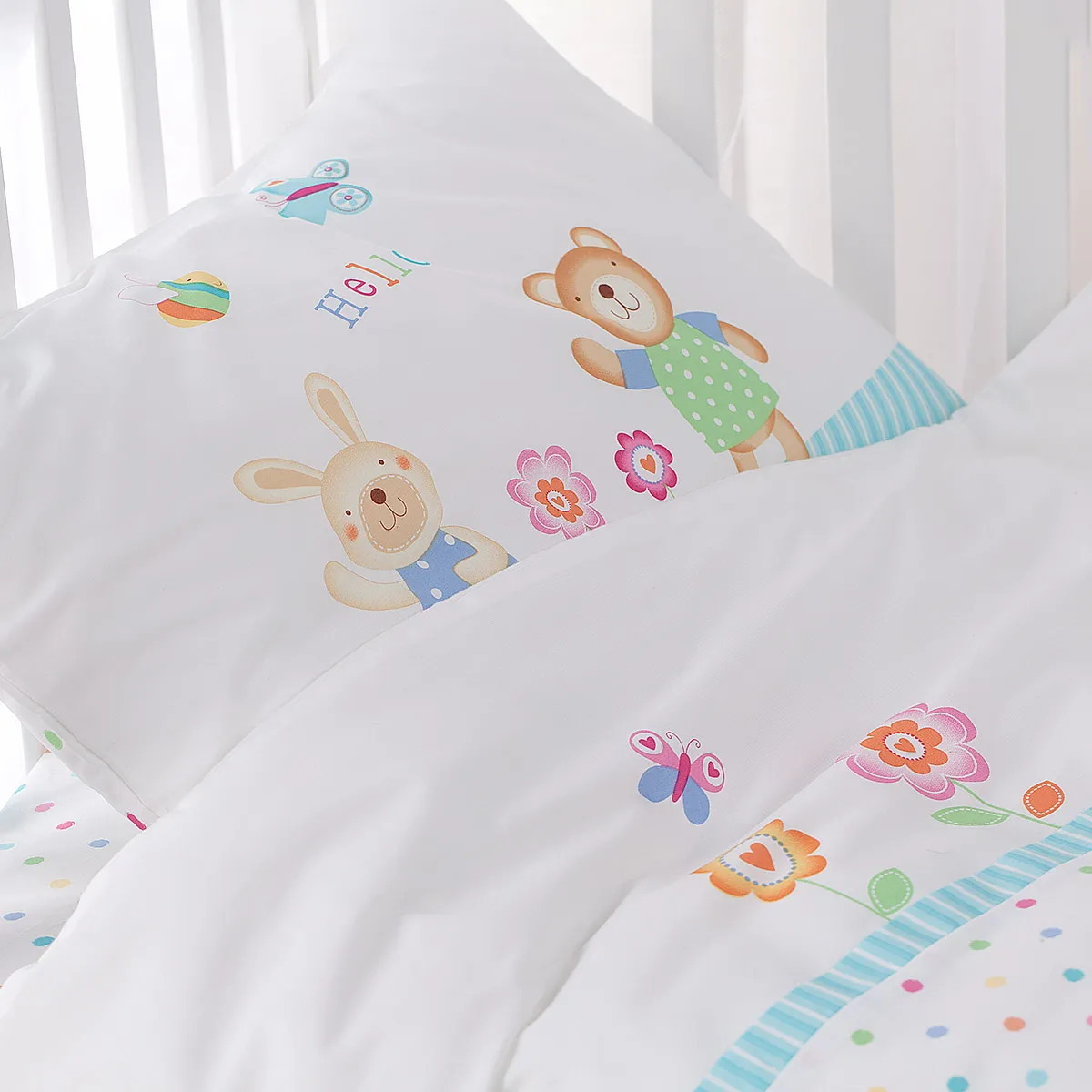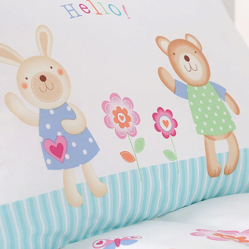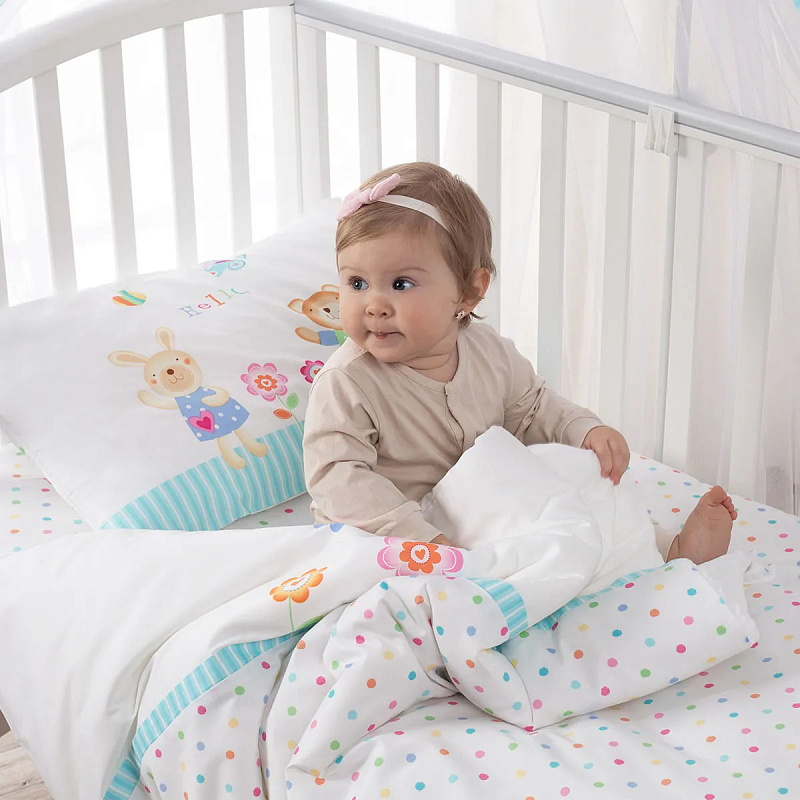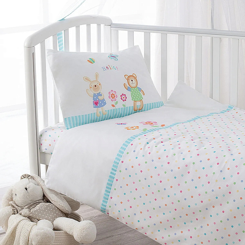 Постельное бельё Perina «Глория», представленный в двух расцветках, — это стильное дизайнерское решение, которое понравится и мальчику, и девочке. Весенняя цветовая гамма и дружелюбные персонажи создадут в детской спальне особенную атмосферу. А продуманные детали (простыня на резинке, пододеяльник на молнии, наволочка) порадуют практичных родителей. Постельное бельё подходит для детской кроватки со спальным местом 120х60 см.