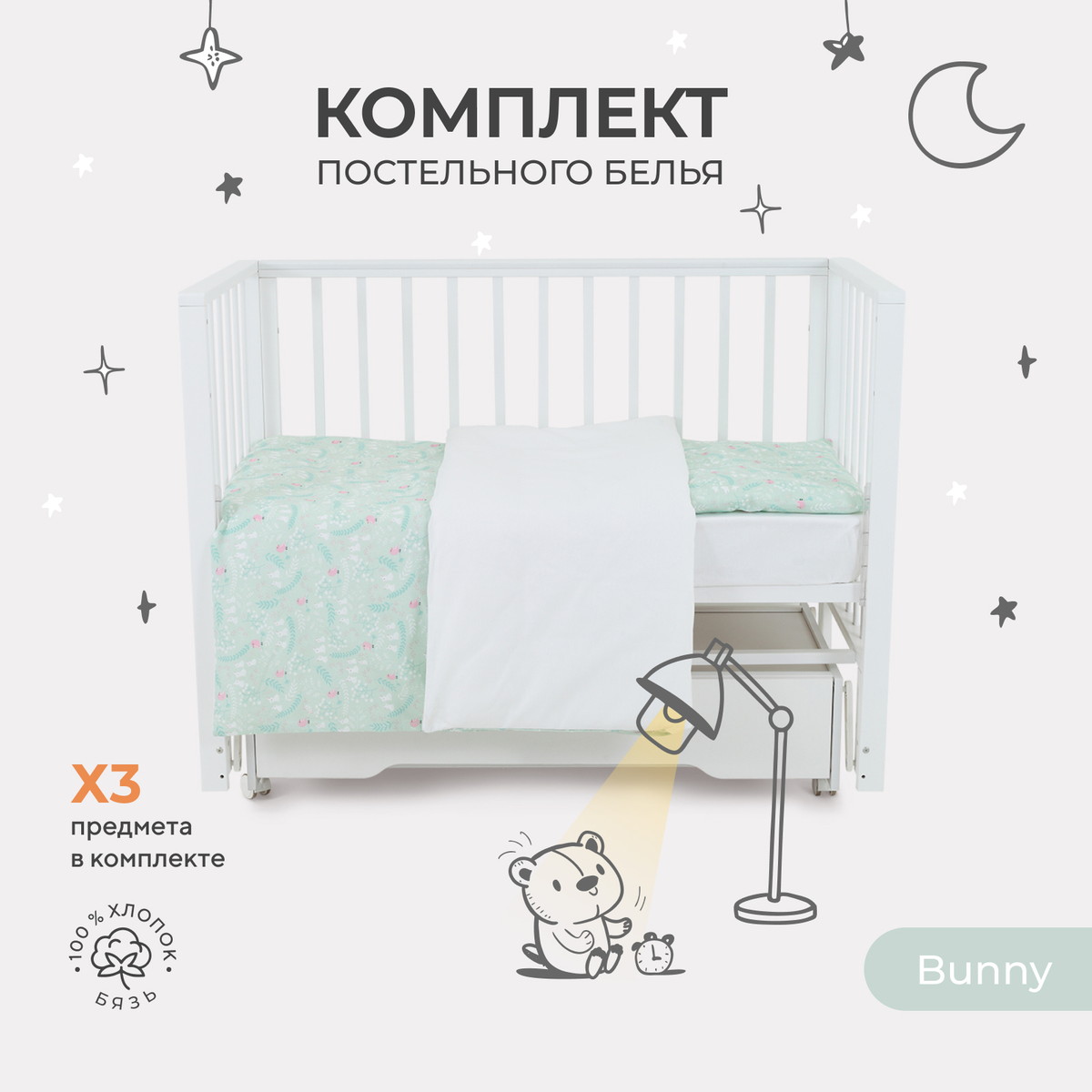 комплект абсолютно экологичен и безопасен для крохи. Выполнен из 100% хлопка.