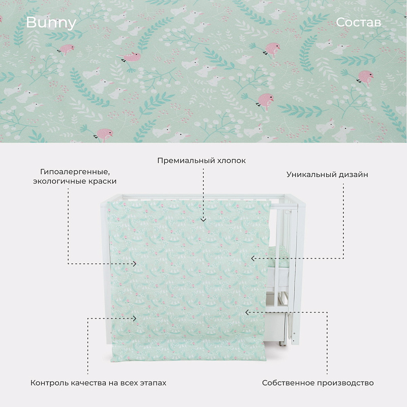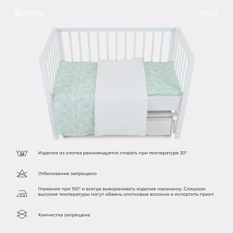 Засыпать с комфортом малышу поможет детское постельное белье RANT BANNY (3 ПРЕДМЕТА). Украшает этот нежный набор трогательный дизайнерский принт мильфлер.
