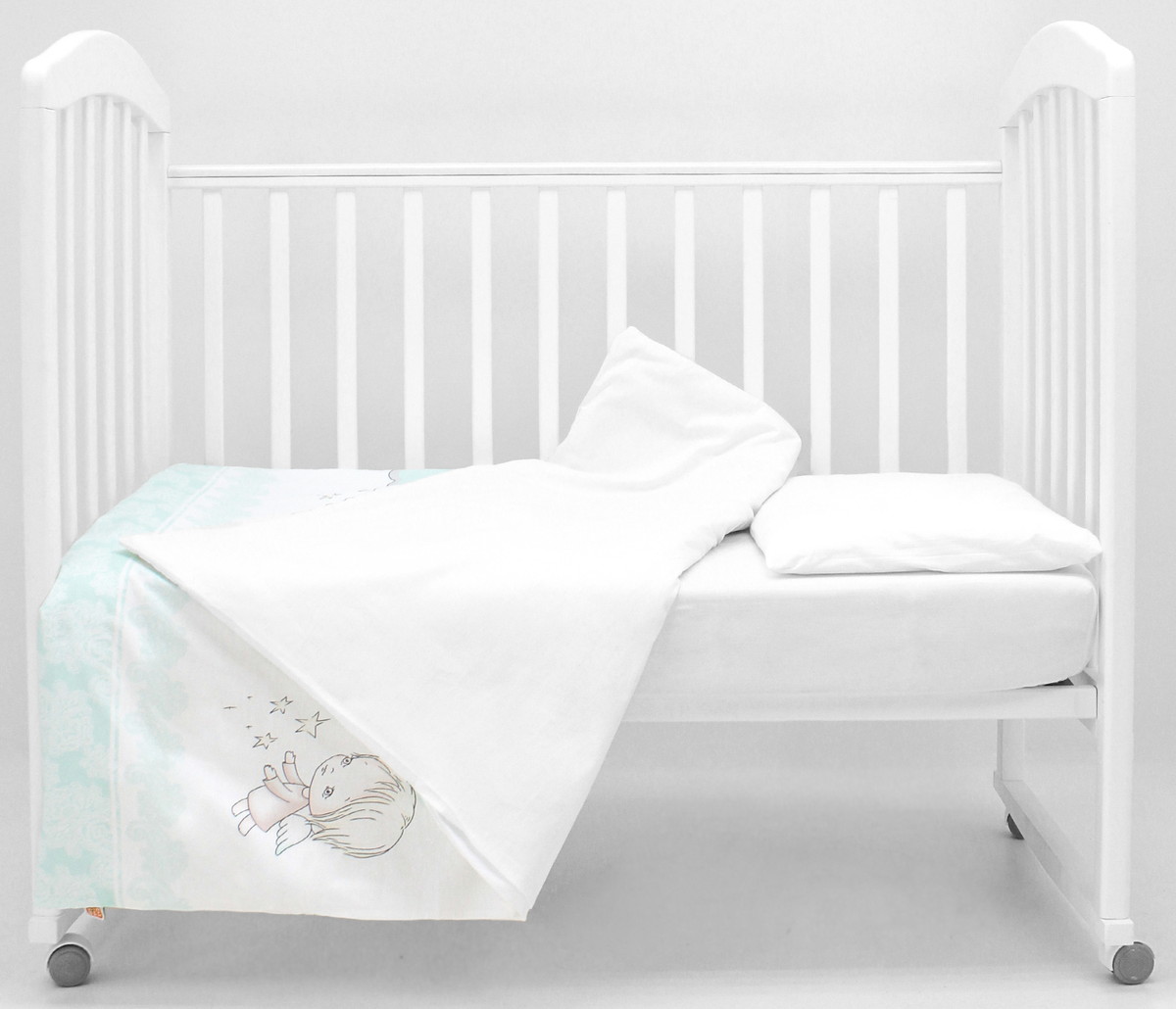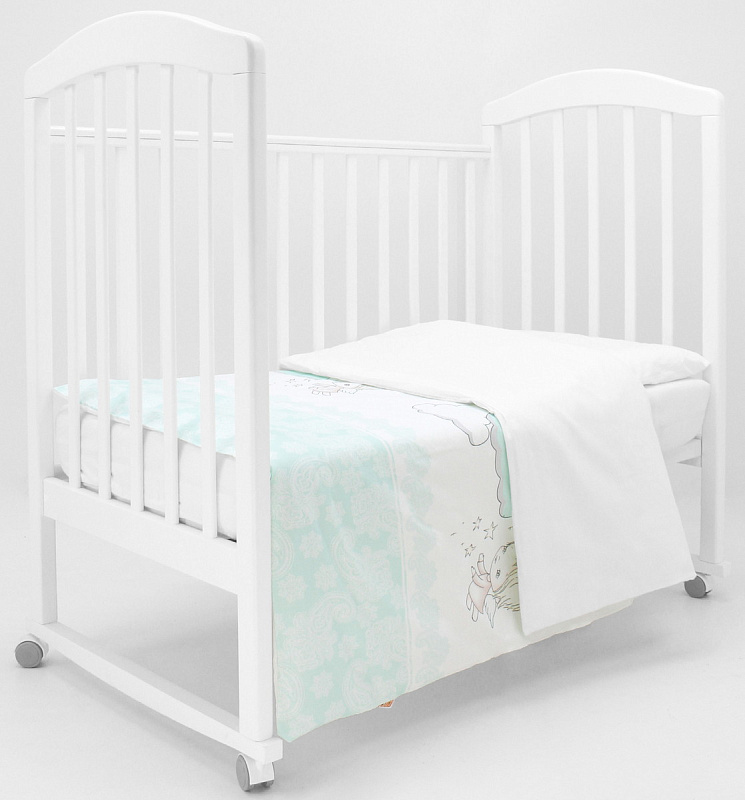 дизайнерские амурчики, украшающие пододеяльник и наволочку, будут охранять сладкий сон вашего малыша