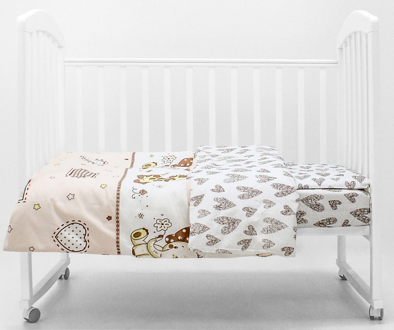 Засыпать с комфортом малышу поможет детское постельное белье ТОПОТУШКИ ЖИРАФ И СЛОНЕНОК (3 ПРЕДМЕТА). Лицевую сторону пододеяльника украшает дизайнерский сюжет с забавными зверятами. Простыня, наволочка, тыльная сторона пододеяльника запринтованы графичными сердечками.