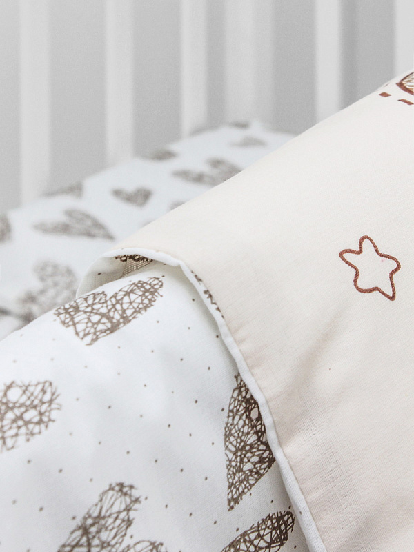 милый принт в виде забавных зверят обязательно порадует кроху. Также малыш оценит дизайнерские сердечки, которыми украшена обратная сторона