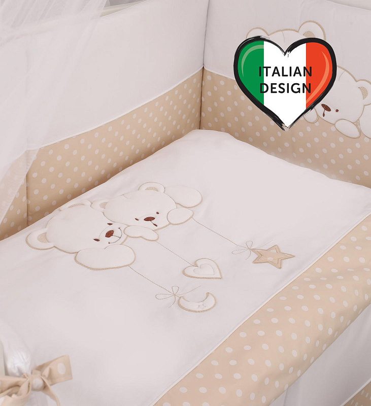 В коллекции Lepre Sweet Bears можно приобрести также комплекты постельного белья для новорожденных, состоящие из 6-ти предметов, который будет дополнен бампером, одеялом и подушкой.