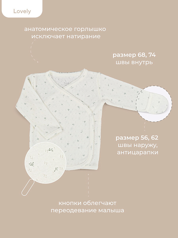 Коллекция LOVELY подарит крохе ощущение нежности и особой заботы. Мягкие сдержанные расцветки (молоко, какао, топленое масло), деликатные натуральные ткани премиум-класса (перфорированный трикотаж и утепленный капитоний), качественная фурнитура в тон, комфортное лекало, лаконичное исполнение, сочетающиеся между собой изделия - визитная карточка нашей одежды для новорожденных и малышей постарше.