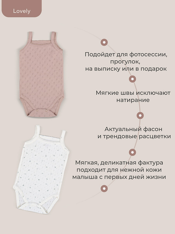 Коллекция LOVELY подарит крохе ощущение нежности и особой заботы. Мягкие сдержанные расцветки (молоко, какао, топленое масло), деликатные натуральные ткани премиум-класса (перфорированный трикотаж и утепленный капитоний), качественная фурнитура в тон, комфортное лекало, лаконичное исполнение, сочетающиеся между собой изделия - визитная карточка нашей одежды для новорожденных и малышей постарше.