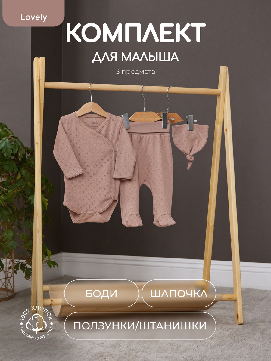 Комплект Rant Lovely №3, 3 предм (боди дл рукав, штанишки, шапочка с узл) 3-91 Brown 68Нет оценокХарактеристики