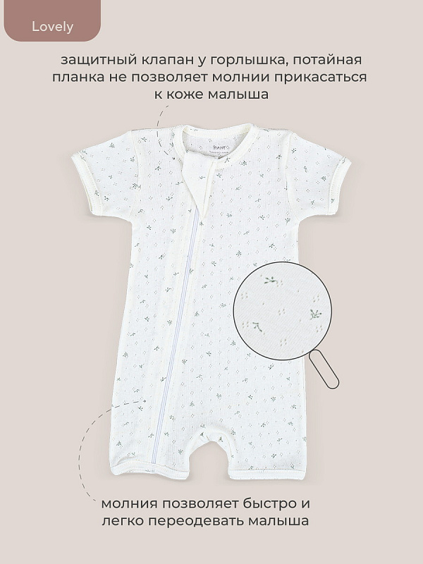Коллекция LOVELY подарит крохе ощущение нежности и особой заботы. Мягкие сдержанные расцветки (молоко, какао, топленое масло), деликатные натуральные ткани премиум-класса (перфорированный трикотаж и утепленный капитоний), качественная фурнитура в тон, комфортное лекало, лаконичное исполнение, сочетающиеся между собой изделия - визитная карточка нашей одежды для новорожденных и малышей постарше
