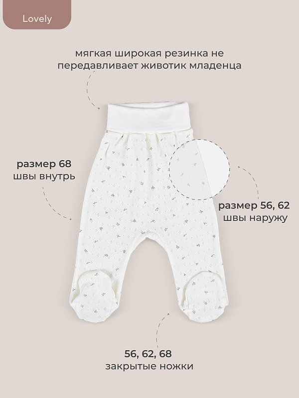 Обращаем ваше внимание: размеры 56, 62 идут швами наружу; размеры 56, 62, 68 выполнены с закрытой ножкой.