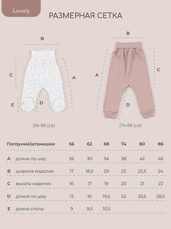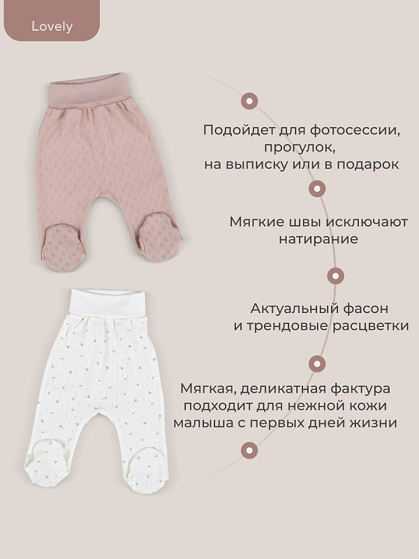 Коллекция LOVELY подарит крохе ощущение нежности и особой заботы. Мягкие сдержанные расцветки (молоко, какао, топленое масло), деликатные натуральные ткани премиум-класса (перфорированный трикотаж и утепленный капитоний), качественная фурнитура в тон, комфортное лекало, лаконичное исполнение, сочетающиеся между собой изделия - визитная карточка нашей одежды для новорожденных и малышей постарше.