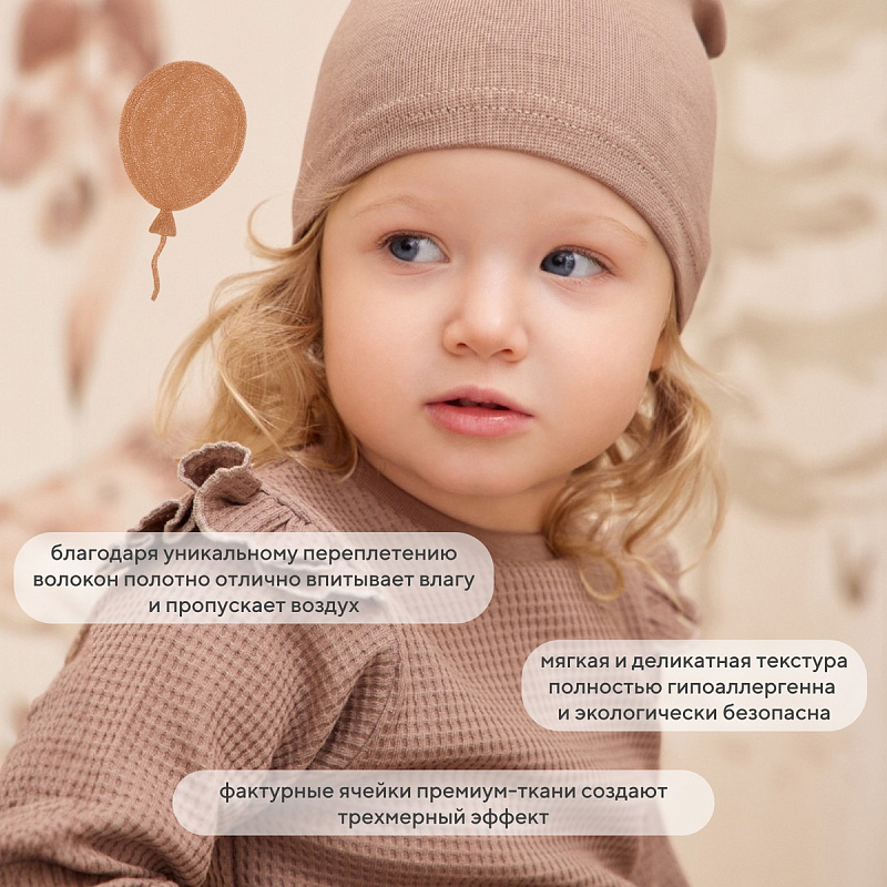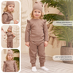Комплект Rant Waffy для девочки лонгслив,штанишки,шапочка 2-92 Brown 74