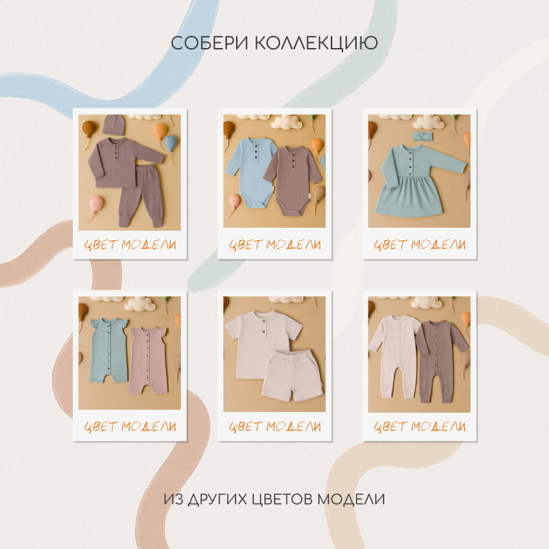 Эксклюзивная коллекция WAFFY буквально соткана из заботы и наполнена бесконечной любовью к нашим маленьким клиентам. Деликатные спокойные расцветки, натуральные ткани премиум-класса (фактурный вафельный трикотаж), качественная фурнитура, комфортное лекало, лаконичное исполнение, сочетающиеся между собой изделия - визитная карточка нашей одежды для малышей.
