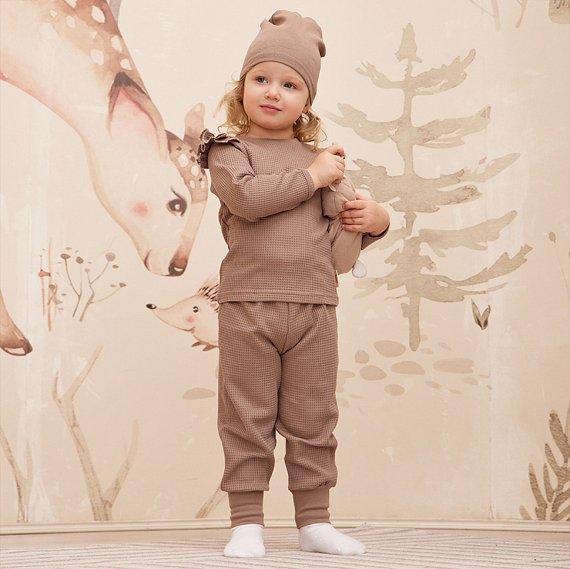 Комплект Rant Waffy для девочки лонгслив,штанишки,шапочка 2-92 Brown 86
