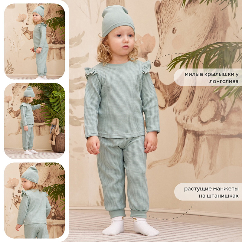 Комплект Rant Waffy для девочки лонгслив,штанишки,шапочка 2-92 Mint 86