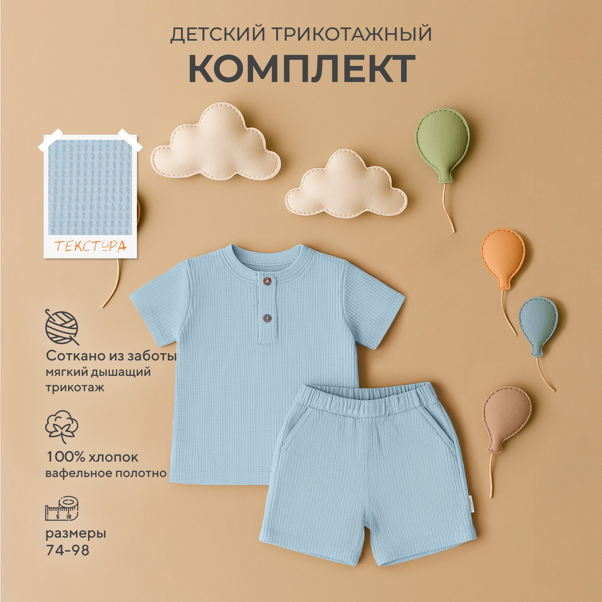 Материал изготовленияфактурный вафельный трикотаж