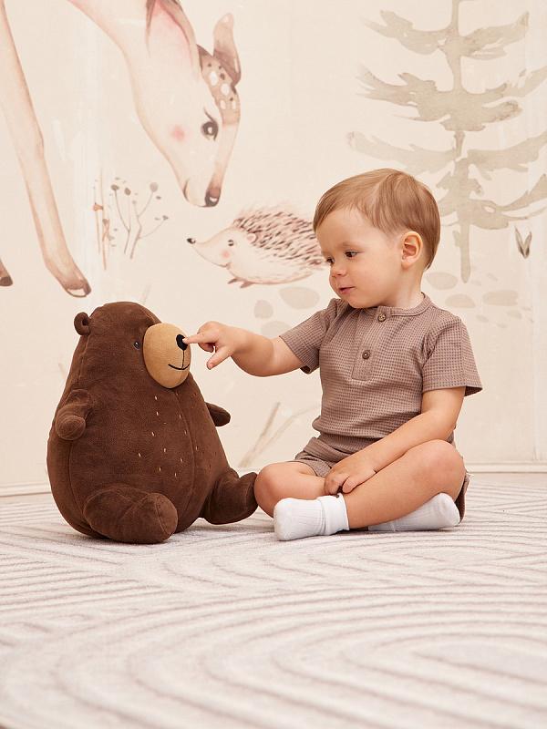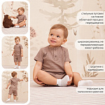 Трогательный комплект для прогулок, путешествий и запоминающихся фотосессий. Шорты дополнены мягким поясом и карманами для важных находок во время прогулки. Застежка-поло на 2 пуговицы сделает процесс переодевания футболки максимально комфортным.