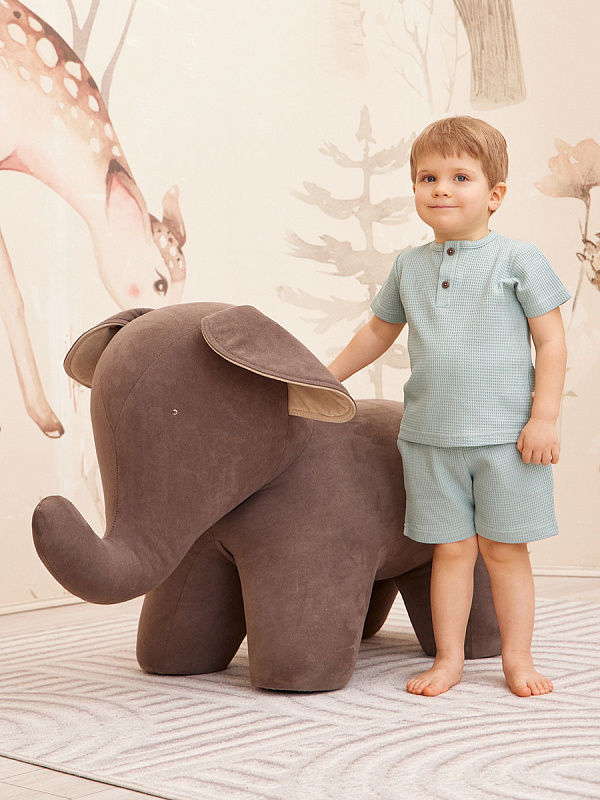 Трогательный комплект для прогулок, путешествий и запоминающихся фотосессий. Шорты дополнены мягким поясом и карманами для важных находок во время прогулки. Застежка-поло на 2 пуговицы сделает процесс переодевания футболки максимально комфортным.