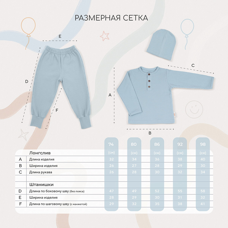 Комплект Rant Waffy лонгслив,штанишки,шапочка 1-92 Blue 74