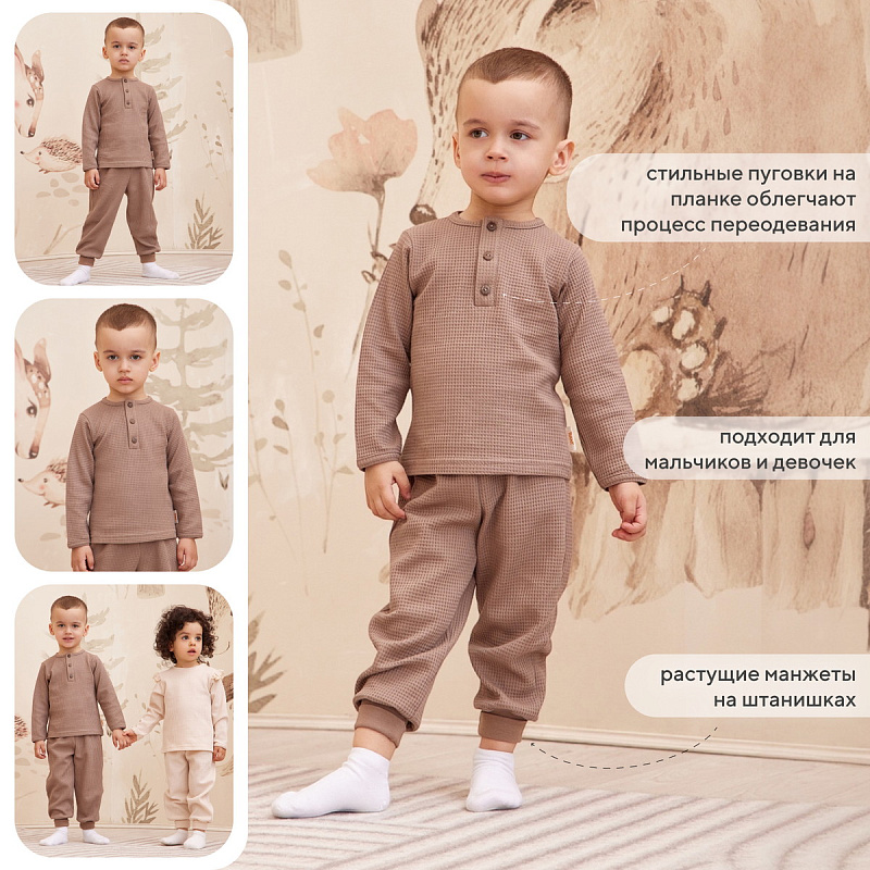Комплект Rant Waffy лонгслив,штанишки,шапочка 1-92 Brown 98