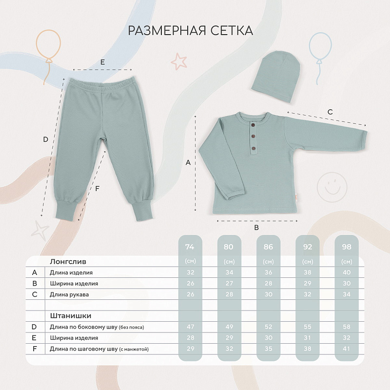 Комплект Rant Waffy лонгслив,штанишки,шапочка 1-92 Mint 86