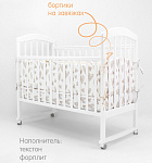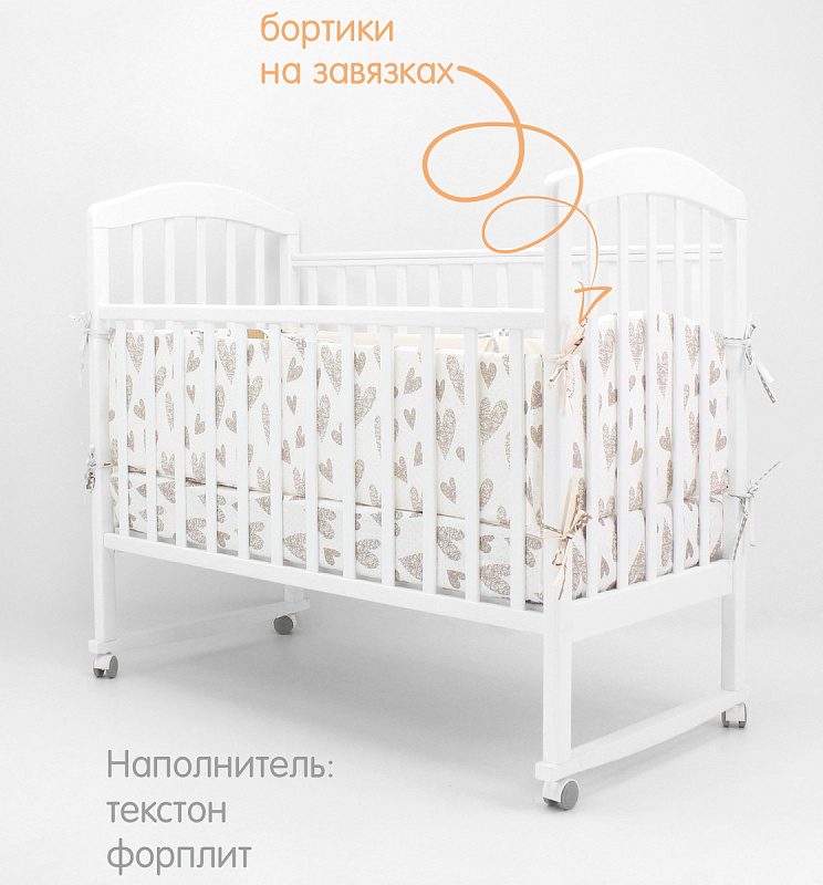 - комплект абсолютно экологичен и безопасен для крохи. Выполнен из 100% хлопка (бязь). Наполнитель бортиков, подушки, одеяла - текстон, форплит