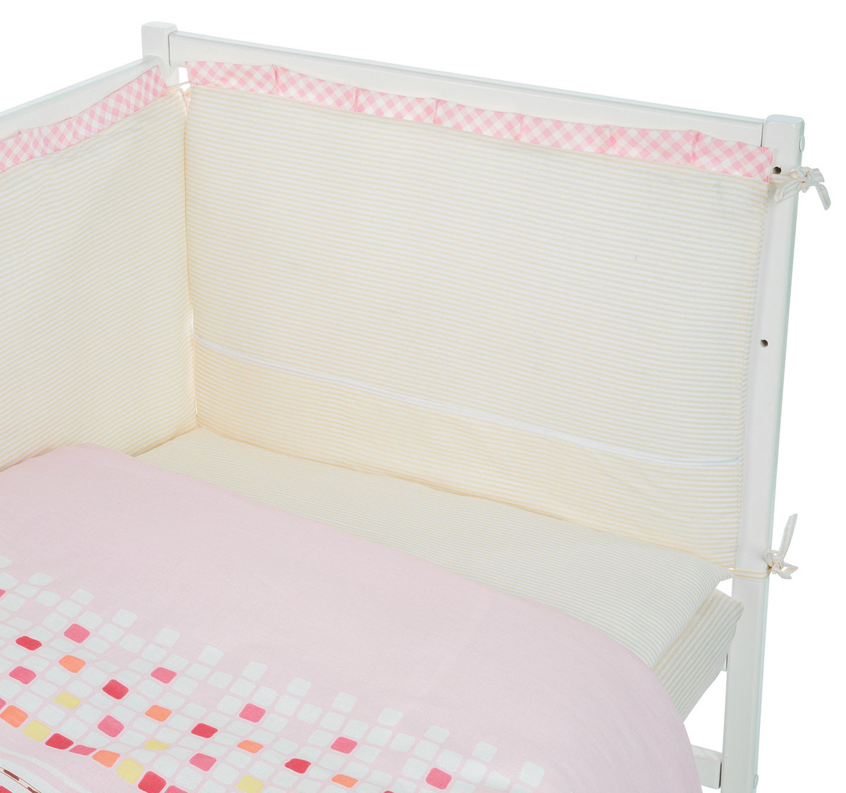 в комплекте: наволочка, подушка, пододеяльник, одеяло, простынь и бортики;