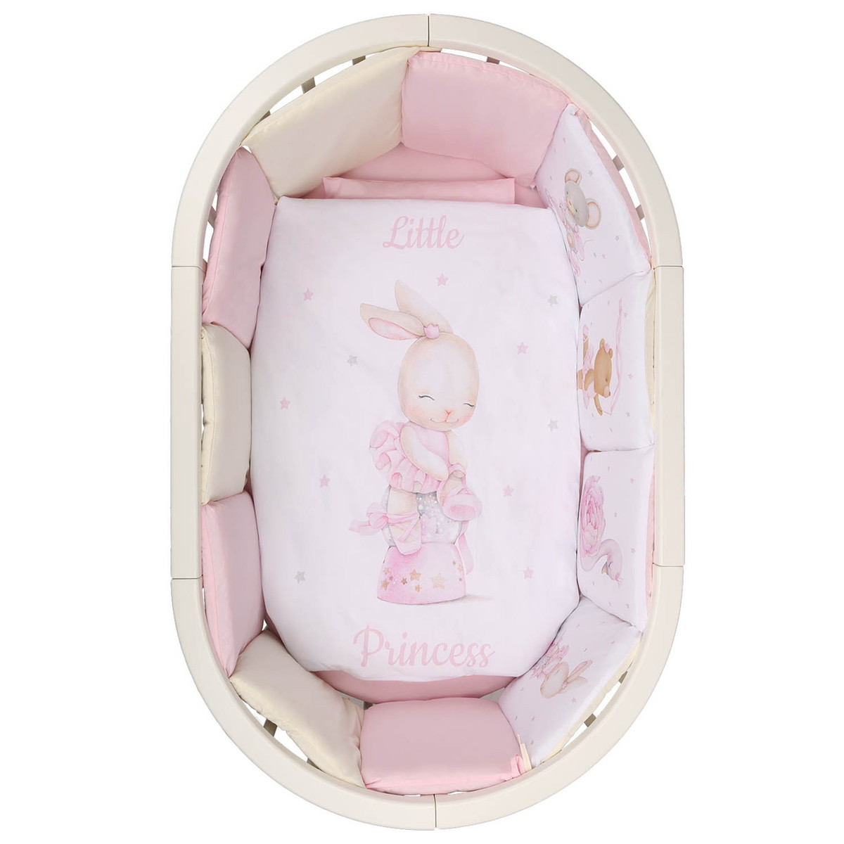Комплект в кроватку подходит как в кругло-овальную, так и в классическую детскую кроватку. Одеяло удобно использовать и для прогулок в коляске, брать с собой в гости или в поликлинику.