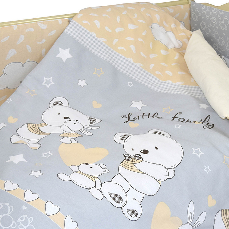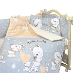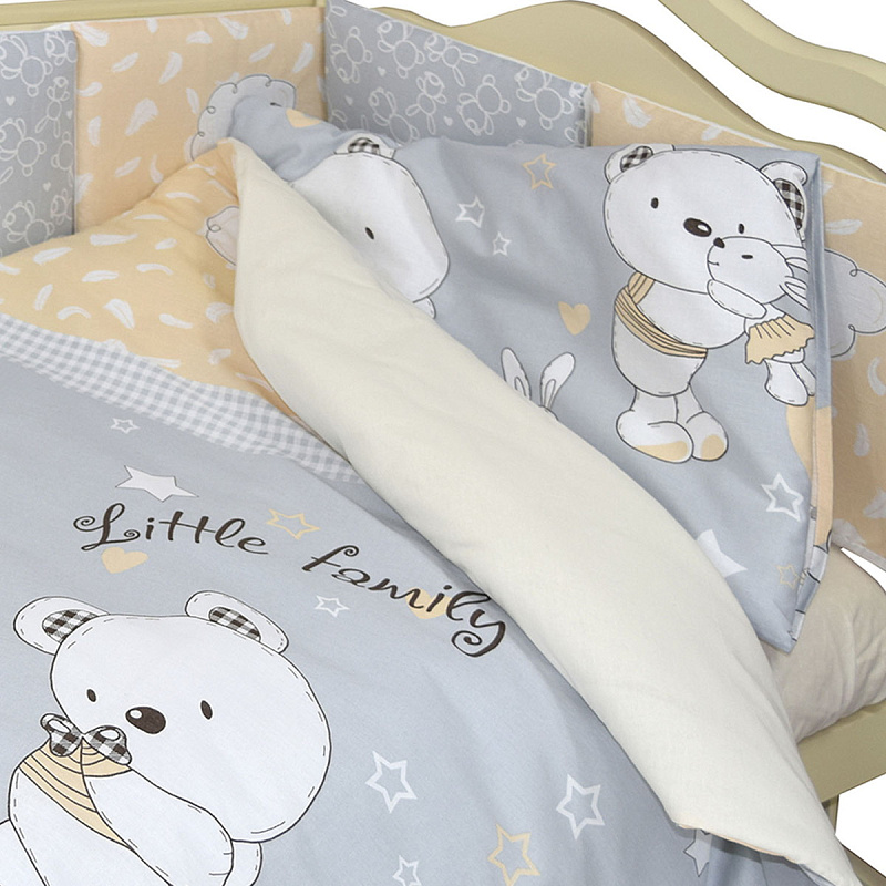 Комплект в кроватку -это неповторимый комфорт для малыша и практичность, которую обязательно оценит родители. Он удачно дополнит и разнообразит детскую комнату. Комплект выполнен из 100% хлопка, и, соответственно, со всеми свойствами хлопка, белье гигроскопично, поддерживает температуру тела, не электризуется. Прочное. Легко в уходе - стирается в обычной стиральной машине на программе мягкой стирки. Производитель оставляет за собой право вносить изменения в дизайн рисунков, сохраняя общий цвет комплекта.