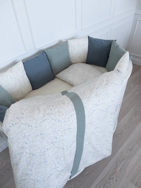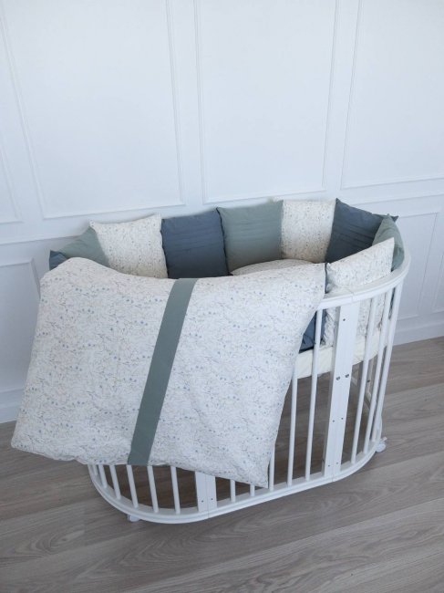 Комплект в кроватку Lappetti Garden для овальной и круглой кроватки 6 предметов серо-голубой