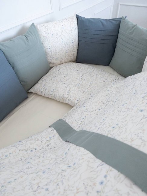 В комплектеПростыня, Подушка, Одеяло, Наволочка, Пододеяльник, Бортик (бампер)