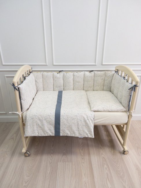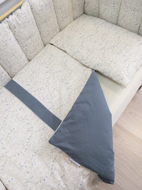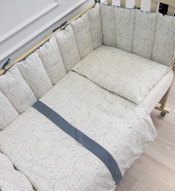 Комплект в кроватку Lappetti Garden для прямоугольной кроватки 6 предметов. серо-голубой