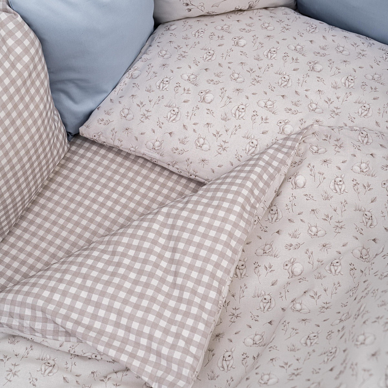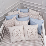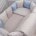 В комплектеПростыня на резинке, Подушка, Одеяло, Наволочка, Пододеяльник, Бортик (бампер)