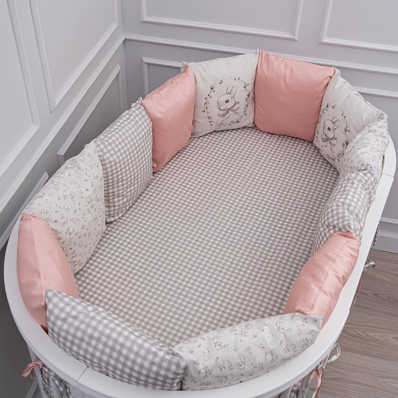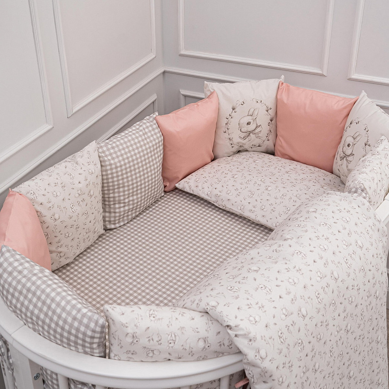 Комплект в детскую кроватку Lappetti Кролик Лаппин для овальной и пря-ой кроватки 6 пр. розовый