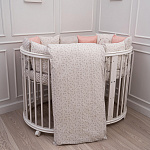 Комплект детского постельного белья Lappetti «Кролик Лаппин» предназначен для кроватки овальной и круглой формы. Он состоит из 6 предметов – подушки, одеяла, наволочки, пододеяльника, простыни без резинки и бампера из 12 подушек со съемными чехлами. Для изготовления постельных принадлежностей использовался высококачественный поплин. Это 100% натуральный материал, обеспечивающий приятные тактильные ощущения, а также отличающийся высокими гигроскопичными и гигиеническими свойствами. В качестве наполнителя подушки используется холлкон и бамбуковое волокно, которые представляющие собой антиаллергенные материалы.