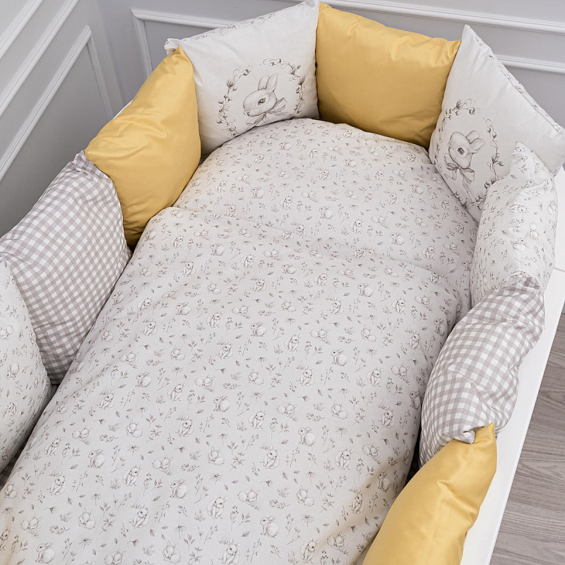 Комплект в детскую кроватку Lappetti Кролик Лаппин для овальной и пря-ой кроватки 6 пр. желтый