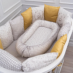 В комплектеПростыня на резинке, Подушка, Одеяло, Наволочка, Пододеяльник, Бортик (бампер)