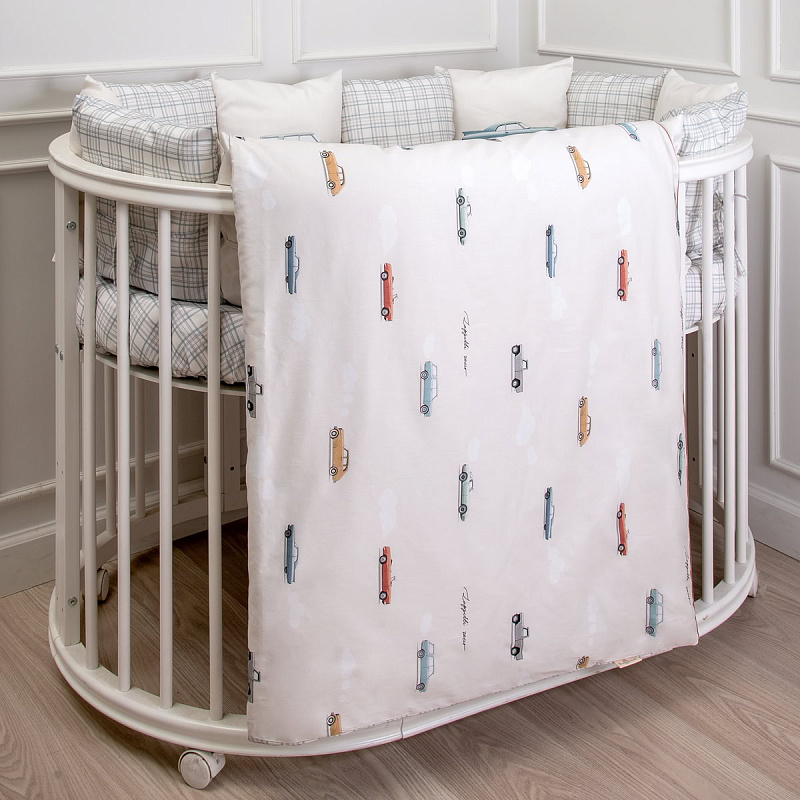 Погрузитесь в мир сладких снов и захватывающих гонок с комплектом в детскую кроватку "Маленький гонщик" от Lappetti! Созданный для прямых и овальных (круглых) кроваток, этот комплект из 6 предметов соткан из премиального сатина (100% хлопок), дарящего нежность и комфорт, а наполнен он теплым и уютным холлконом.