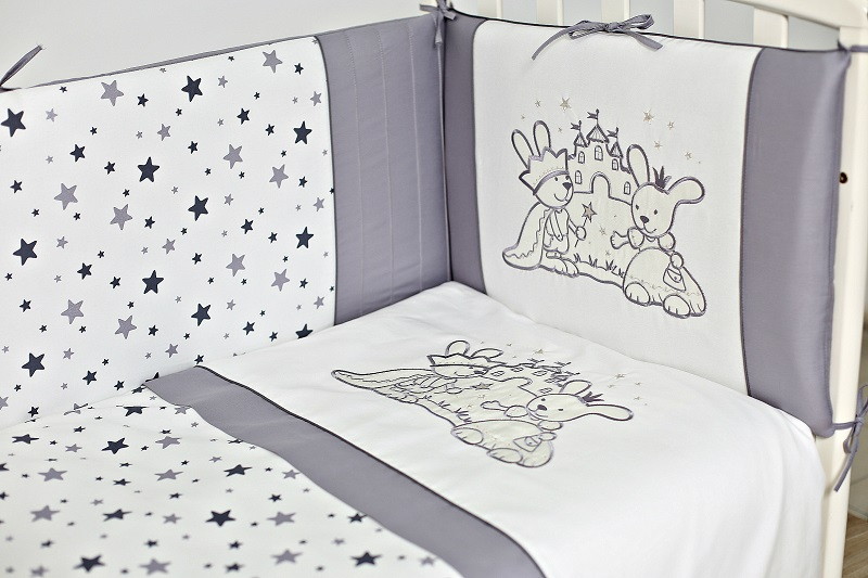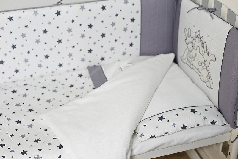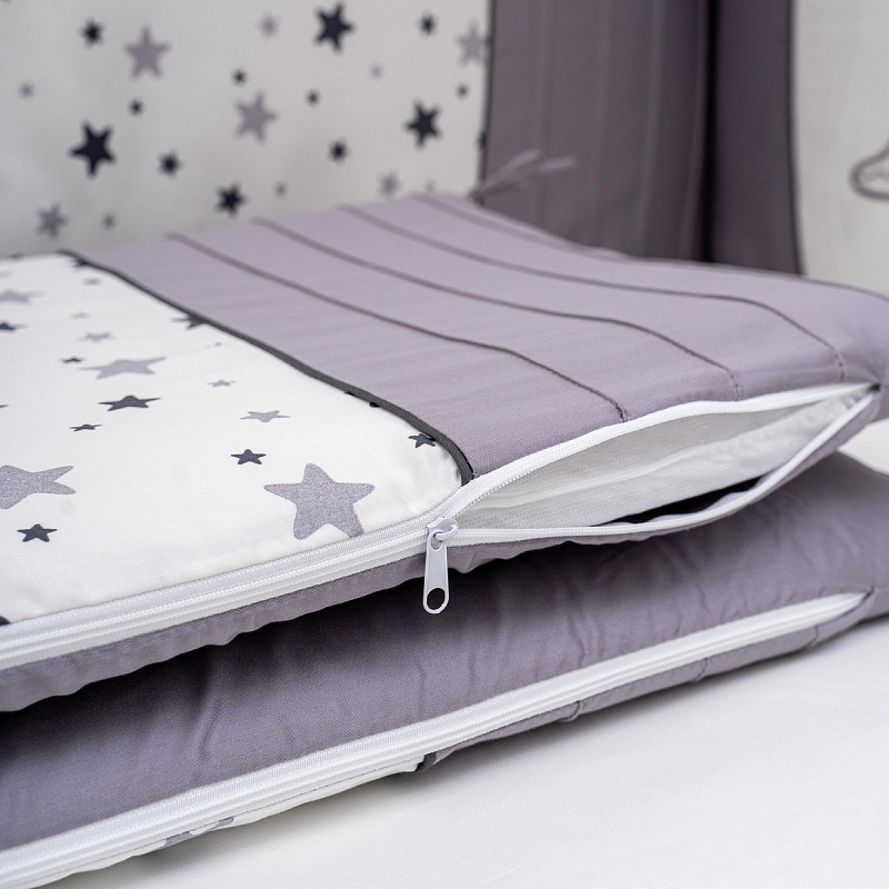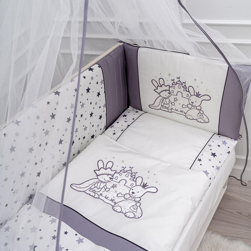 Комплект в детскую кроватку Lappetti Звездочет с декоративной вставкой 6 предметов 6062 Серый