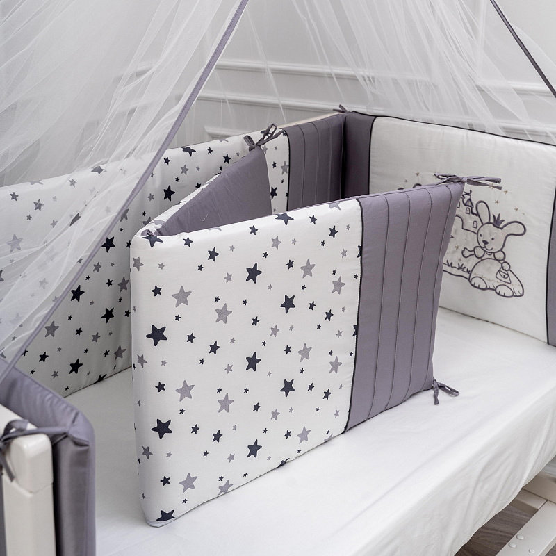 Комплект в детскую кроватку Lappetti Звездочет с декоративной вставкой 6 предметов 6062 СерыйНет оценокХарактеристики