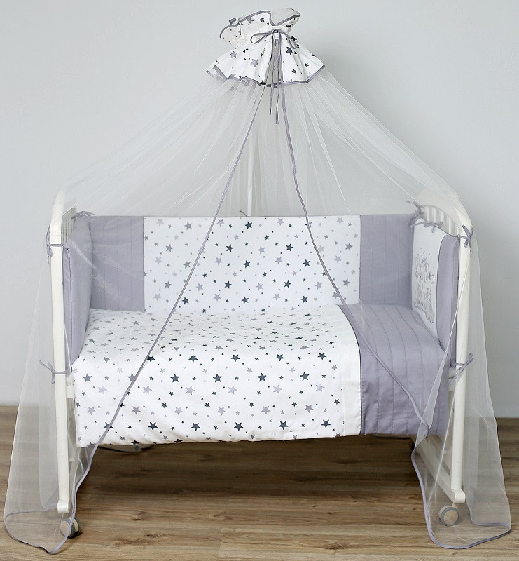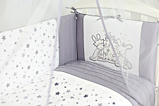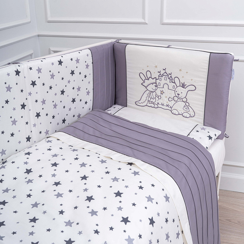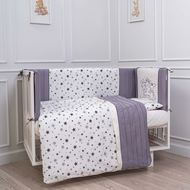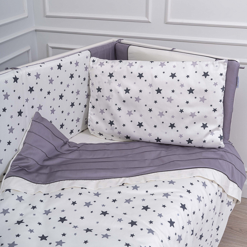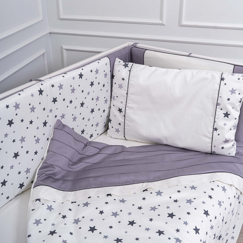 Комплект в детскую кроватку Lappetti Звездочет с декоративной вставкой 6 предметов серый