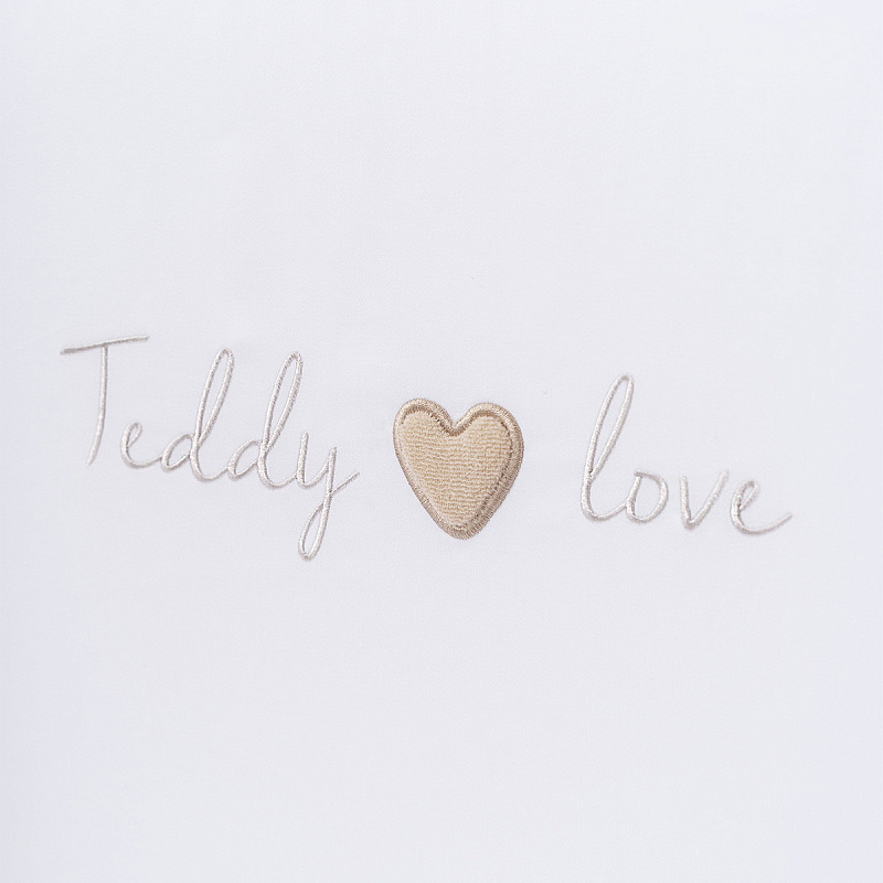 Основной цвет модели — белый, он создает воздушное настроение и не будет отвлекать ребенка перед сном. Но и скучать не придется, ведь на пододеяльнике и бортиках мы сделали объемные натуральные аппликации-мишек. Проверено: они совершенно не мешают спать, зато после пробуждения малышу будет интересно их рассматривать и трогать. Приятный на ощупь мягкий хлопок к этому точно располагает!