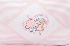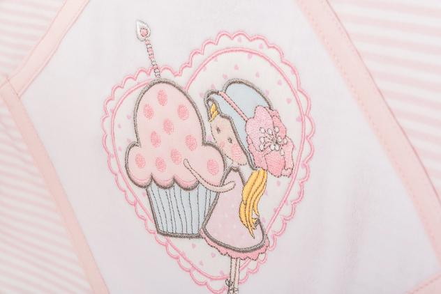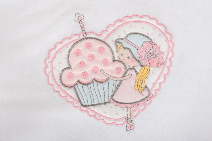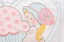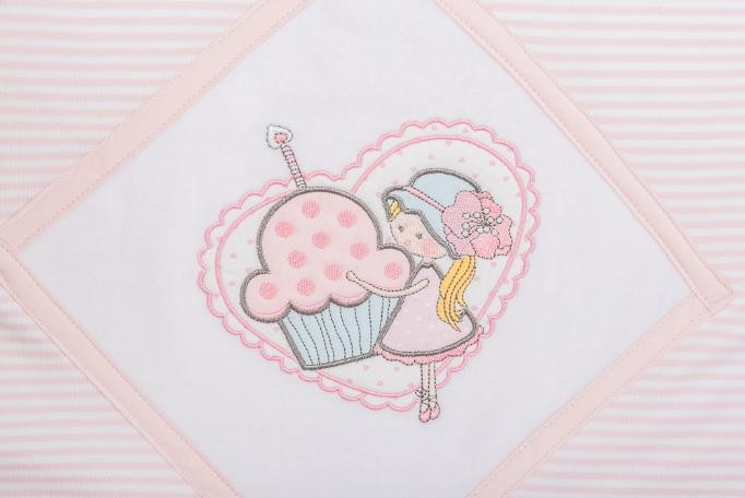 комплект декорирован аппликацией в виде очаровательной куколки Cutie Pie с пирожным