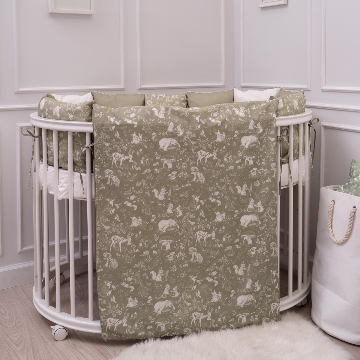 Комплект в кровать Lappetti Лесная симфония для овальной и прямоугольной кроватки 6 предметов 6124/4 оливковый