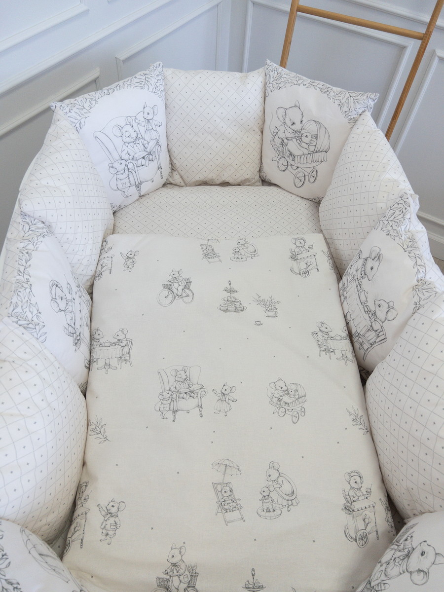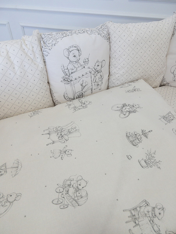 Комплект в кровать Lappetti Мышкины каникулы для овальной и прямоугольной кроватки 6 предметов 6137/5 серый