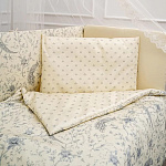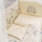Главным элементом комплекта является съемный бортик, состоящий из 4-х частей размером 44х360. Он оснащен чехлом, что обеспечивает легкую замену и максимальную гигиену. Бортик создает уютную и безопасную обстановку в кроватке, предотвращая выпадение ребенка.