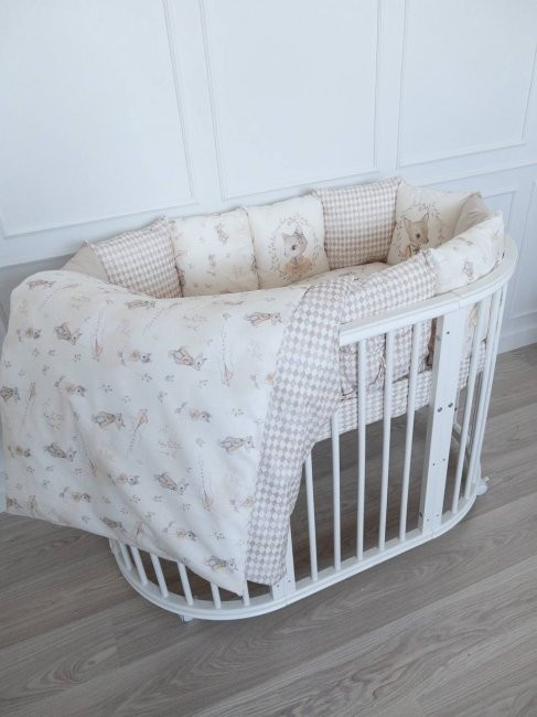 В комплектеПростыня, Подушка, Одеяло, Наволочка, Пододеяльник, Бортик (бампер)
